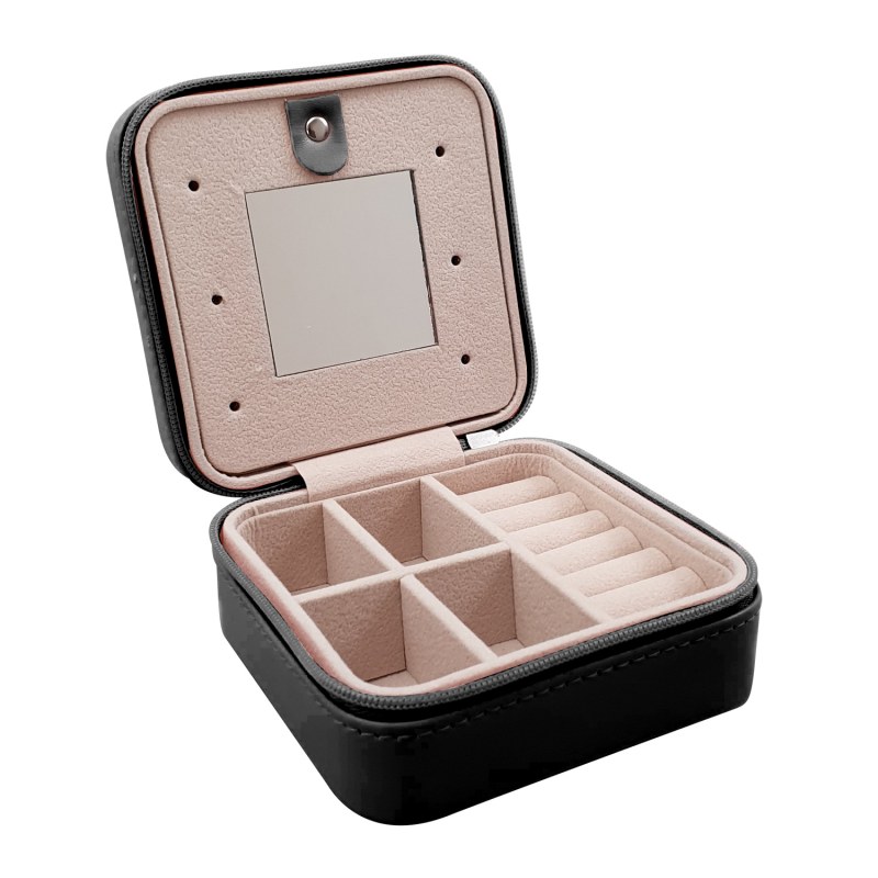 PI0329Joyero organizador redondo color rosado con espejo cartera 9.7 x 9.7 x 5.5 cms$ 7.950